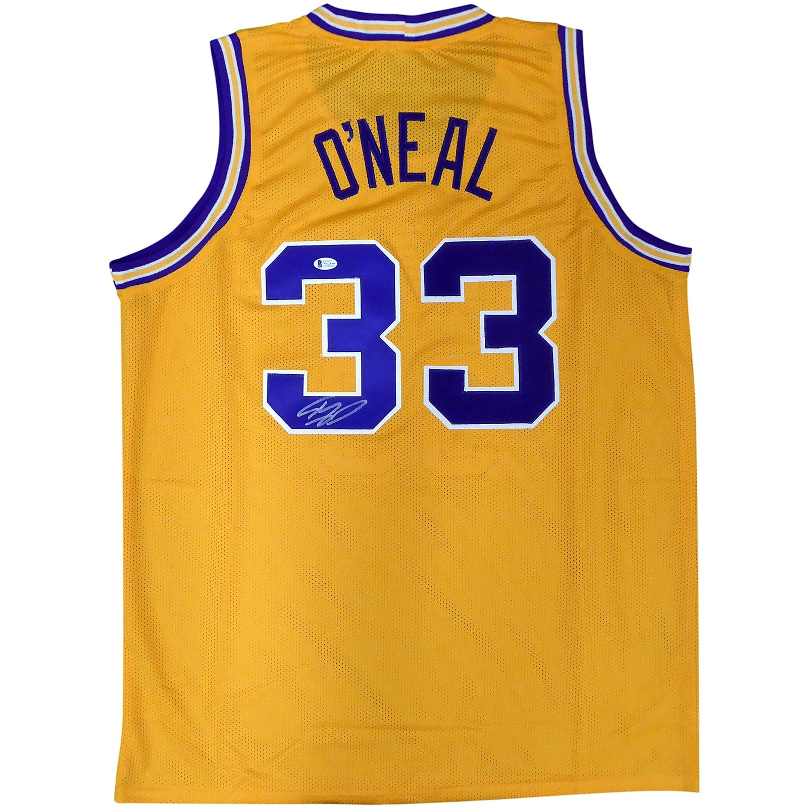 Own a piece of basketball history with this autographed Shaqulle O'Neal LSU Tigers Custom Jersey! With the gold #33 and Shaq's Beckett authenticated signature, this jersey is a must-have for any fan. Show your love for the game and its legends with this unique piece of memorabilia. Get yours today!